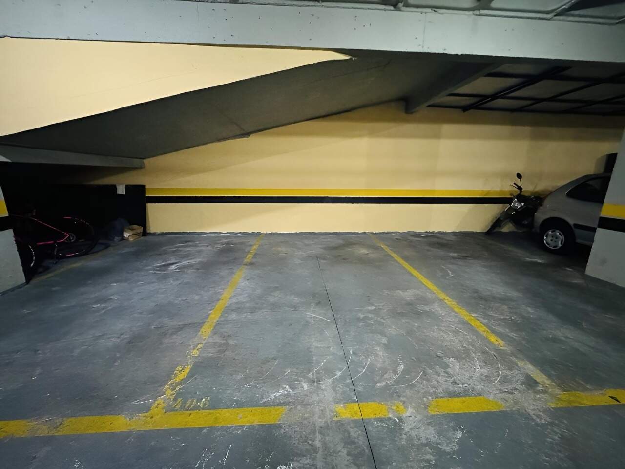 Uma vaga de garagem boa que cabe camionete.